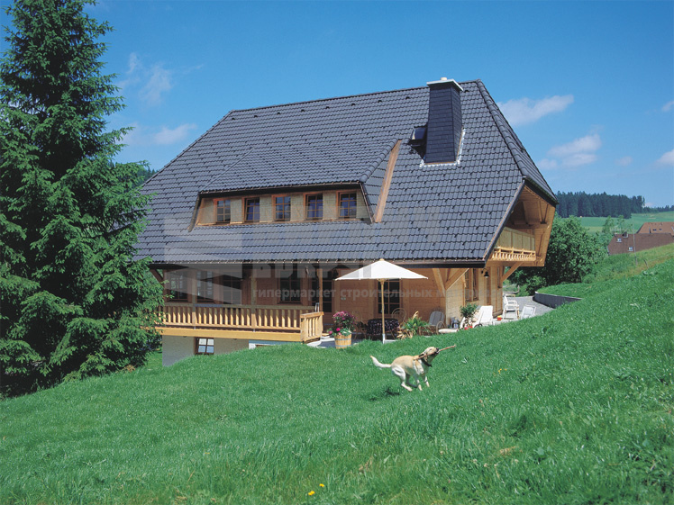 Цементно-песчаная черепица Braas Франкфуртская, когда говорят о немецкой натуральной черепице, представляют обычно именно её. Цементно-песчаная черепица Brass выполнена как раз в Немецком стиле. Представлена огромным выбором цветов и доборных дополнительных элементов. Черепица Braas Франкфуртская воплотила в себе красоту внешнего вида, качественные материалы из которых она произведена и надежность во время всего срока эксплуатации.